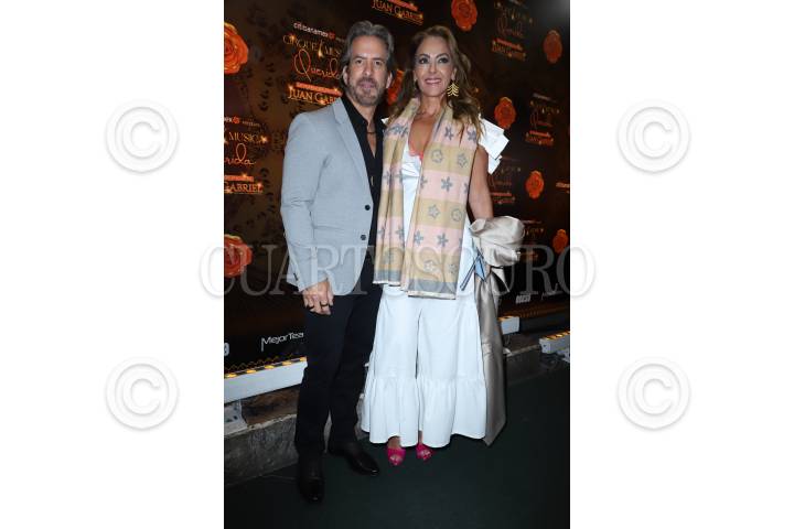 Sergio Mayer e Isabella Camil a su paso por la alfombra roja del estreno de Cirque Música Querida, La celebración de Juan Gabriel, en el Teatro San Rafael.