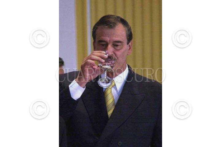 Con copa en mano, seguro de buenos deseos y atinadas intencione. El 2001 se termina, consabido por muchos, asido en razón de la experiencia. ¿ Y para el 2002?, ya lo dijo el señor Presidente Vicente Fox, -Estamos en éso. Salud. FOTO: Cuartoscuro