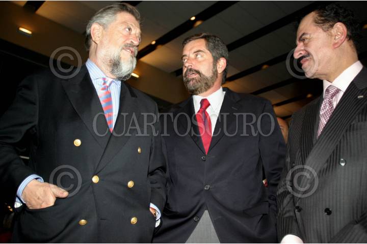 MÉXICO D.F. 13JUNIO2006.- El abogado Javier Quijano, Juan Ramón de la Fuente rector de la UNAM y Francisco Elí Ortiz, director del periodico el Univesal, durante la presentación del libro del diputado perredista, Manuel Camacho Solís, que lleva como titulo " El Desacuerdo Nacional ". FOTO: Guillermo Perea/CUARTOSCURO.COM