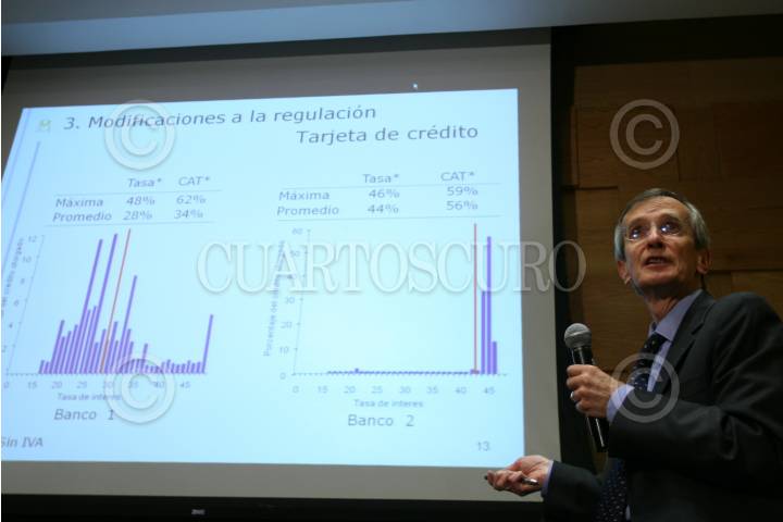 MÉXICO D.F., 27AGOSTO2009.- José Quijano, del Banco de México, durante la conferencia ofrecida a lo medios especializados, donde dio a conocer los cambio que se dan a la regulación del CAT, esto en las instalaciones de esta institución. FOTO: GUILLERMO PEREA /CUARTOSCURO.COM