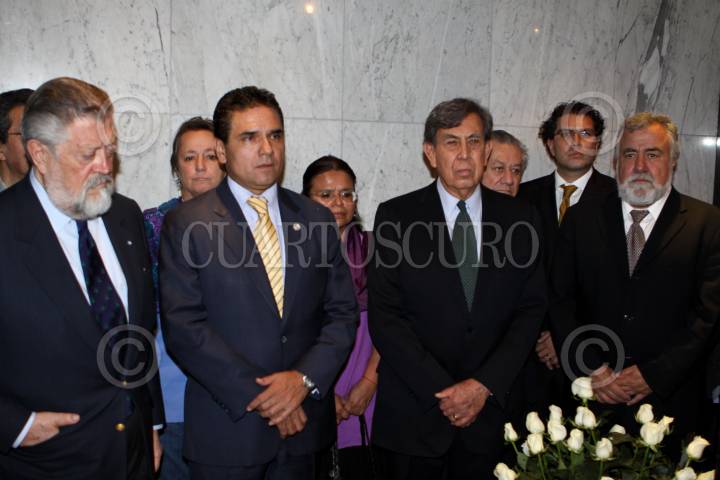 MÉXICO, D.F., 18MARZO2011.- El abogado Javier Quijano, el senador Silvano Aureoles Conejo, el ingeniero Cuauhtemoc Cardenas Solorzano y el diputado federal Alejandro Encinas, montaron una guardia de honor ante la tumba del general Lázaro Cárdenas del Río por motivo del 73 aniversario de la Expropiación Petrolera que se realizo en el Monumento a la Revolución. FOTO: RODOLFO ANGULO/CUARTOSCURO.COM