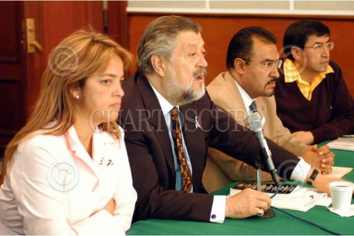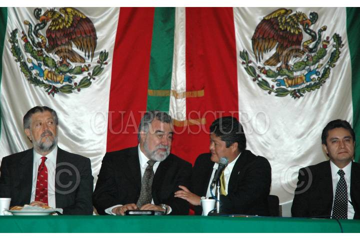 MEXICO, D.F. 02JUNIO2005.- Javier Quijano, Alejandro Encinas, secretario de gobierno, Carlos Gamiz y Jorge Alberto Lara Rivera realizaron una conferencia en la ALDF. FOTO: Iván Stephens/CUARTOSCURO.COM