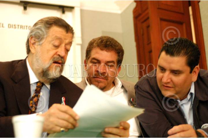 MEXICO, D.F 13ABRIL2005.- El grupo parlamentario del PRD en la Asamblea Lesgislativa del Distrito Federal y el abogado constitucionalista Javier Quijano, ofrecieron conferencia de prensa para detallar los alcances de la controversia constitucional que interpuso la Asamblea Legislativa ante la Suprema Corte de Justicia de la Nación en contra de la Cámara de Diputados, por considerar que rebaso las facultades que le concede la Constitución al destituir al Jefe de Gobierno del Distrito Federal. FOTO: CUARTOSCURO.COM