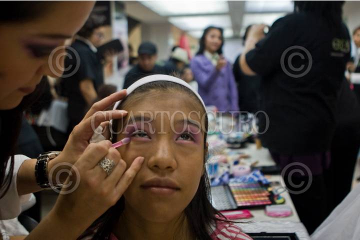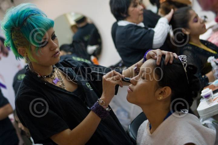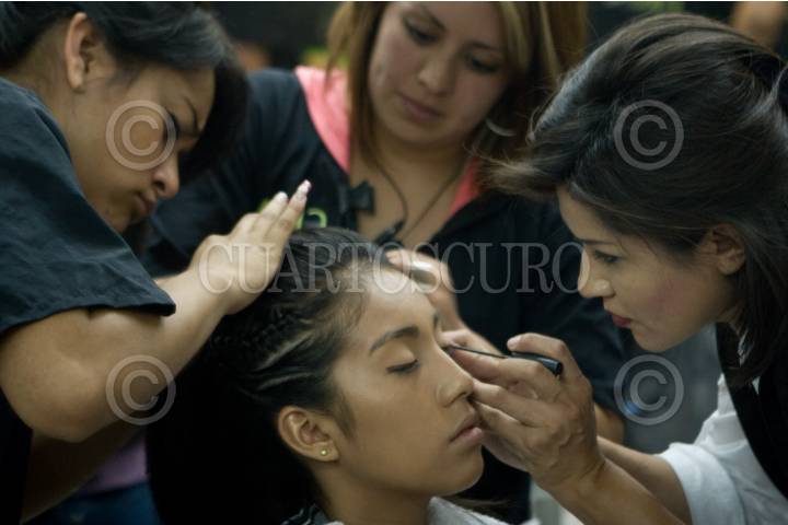 MÉXICO, D.F., 30ABRIL2011.- Decenas de quinceañeras comenzaron a maquillarse y peinarse esta mañana en diferentes puntos de la ciudad para celebrar por la tarde el Gran Baile Nacional de Quinceañeras en el Auditorio Nacional. Las actividades de las jóvenes tienen programadas ara este día incluyen la toma de fotografías en lugares representativos de la ciudad, un desfile por la calle Madero en el Centro Histórico y un concierto en el Auditorio Nacional. FOTO: ISAAC ESQUIVEL/CUARTOSCURO.COMu