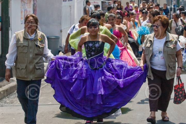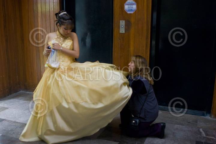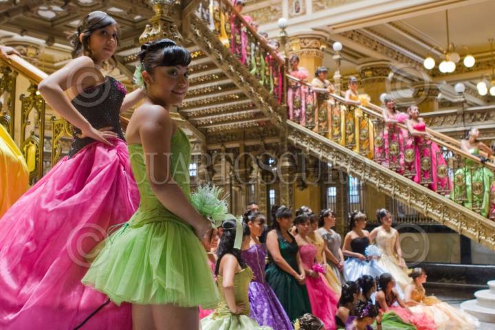 MÉXICO, D.F., 30ABRIL2011.- Decenas de quinceañeras se tomaron una foto en el Palacio Postal, previo al Gran Baile Nacional de Quinceañeras en el Auditorio Nacional. FOTO: ISAAC ESQUIVEL/CUARTOSCURO.COMu