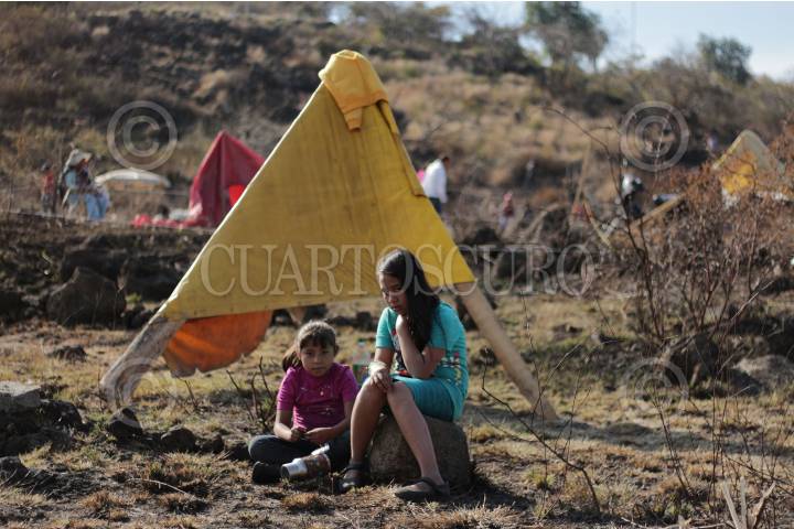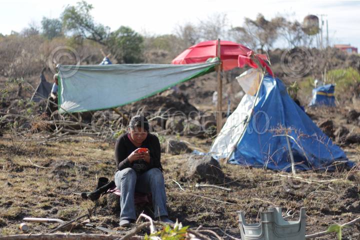 MORELIA, MICHOACÁN, 20ENERO2016.- Una menor de edad reposa después de levantar una pequeña casa de campaña en el predio llamado Quinceo, que se encuentra a las faldas del cerro del mismo nombre; clasificado cómo reserva natural. Se calcula que unas 60 familias invadieron el predio que se encontraba parcialmente habitado. El Movimiento Antorchista, se hizó presente con algunas 200 personas armados con palos y piedras. Hasta el momento la situación se mantiene en tensa calma. FOTO: ALAN ORTEGA /CUARTOSCURO.COM