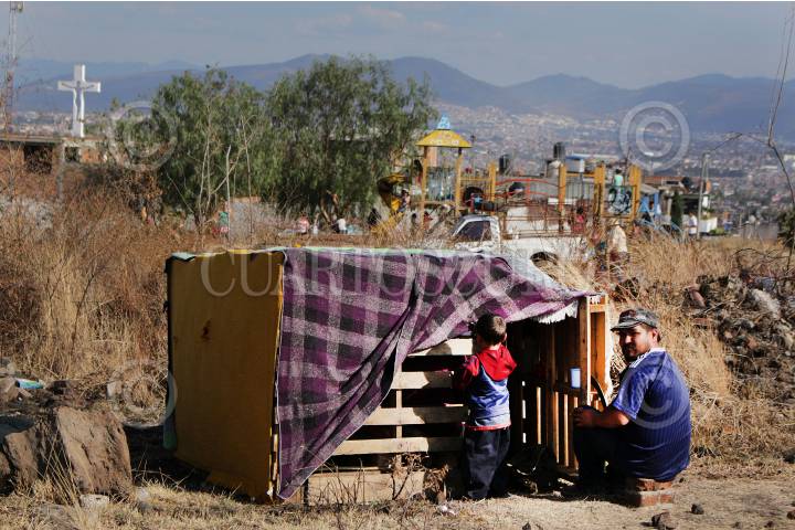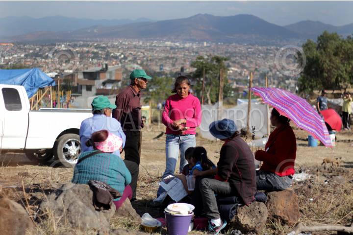 MORELIA, MICHOACÁN, 20ENERO2016.- Una familia reposa después de levantar una pequeña casa de madera en el predio llamado Quinceo, que se encuentra a las faldas del cerro del mismo nombre; clasificado cómo reserva natural. Se calcula que unas 60 familias invadieron el predio que se encontraba parcialmente habitado. El Movimiento Antorchista, se hizó presente con algunas 200 personas armados con palos y piedras. Hasta el momento la situación se mantiene en tensa calma. FOTO: ALAN ORTEGA /CUARTOSCURO.COM