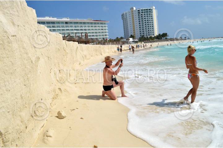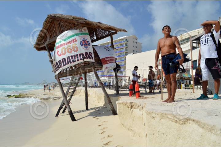 CANCUN, QUINTANA ROO, 24FEBRERO2016.- Los frentes fríos han afectado la zona de playas específicamente "playa gaviotas" que se observa un escarpe de más de metro y medio, y ante la próxima temporada de "Spring break", autoridades municipales afinan detalles para establecer un operativo de seguridad más extenso en este destino turístico, informó la Secretaría municipal de Seguridad Pública y Tránsito. La corporación aseguró que el objetivo es proporcionar seguridad y protección a los visitantes que arriben a este centro vacacional, por lo que a partir del viernes 26 de febrero implementará el operativo “Spring break 2016”. FOTO: ELIZABETH RUIZ /CUARTOSCURO.COM