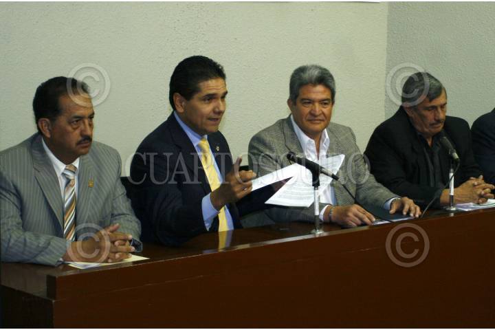 MÉXICO, D.F. 19DICIEMBRE2007.- El senador Silvano Aureoles, el diputado Fausto Fluvio y los porcicultores Roberto Espinoza y Marco Quintanilla ofrecieron una confrencia acerca de las movilizaciones contra de la entrada en vigor del capítulo agropecuario del TLCAN. FOTO: PAOLA HIDALGO/CUARTSCURO.COM