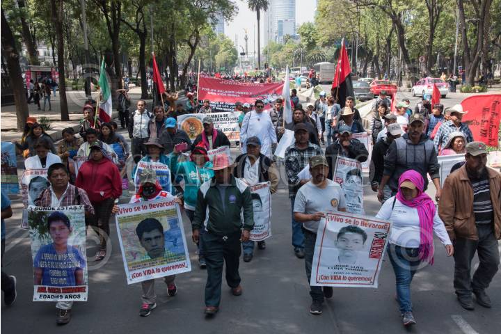 CIUDAD DE MÉXICO, 17MARZO2017.- Estudiantes de la Normal Rural Raúl Isidro Burgos, Padres y madres de los normalistas desaparecidos de Ayotzinapa, se unieron a la marcha de los Jornaleros de San Quintín que llegó el día de hoy a la capital. La manifestación concluyó con un mitin en el Monumento a la Revolución, donde los trabajadores del campo de Baja California denunciaron las condiciones desfavorables y de explotación en las que se encuentran. Cabe mencionar que esta caravana del norte del país, realizará visitas a distintas dependencias gubernamentales para exigir mejoras en sus condiciones de vida. FOTO: TERCERO DÍAZ /CUARTOSCURO.COM
