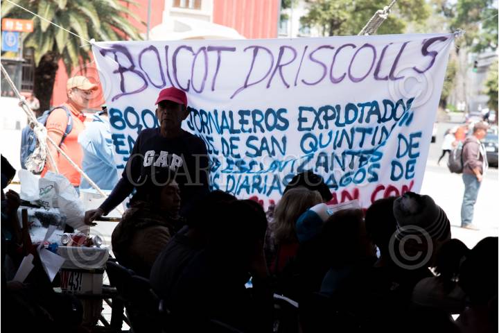 GUASAVE, SINALOA, 10MARZO2017.- Jornaleros de San Quintín, Baja California, realizaron una protesta frente a la Walmart de Guasave, Sinaloa, como parte de las actividades del boicot Driscoll’s, empresa acusada de acaparar los productos agricoles del Valle de San Quintín por los que son explotados los trabajadores del campo. FOTO: DAMIAN GÓMEZ /CUARTOSCURO.COM
