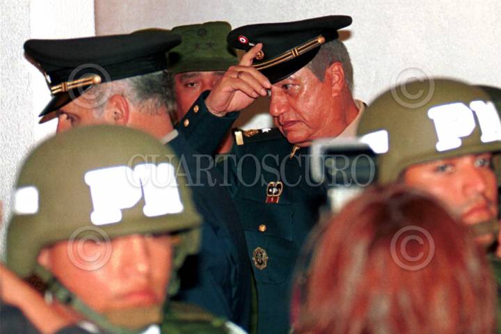 Durante el Jucio de Guerra los comandantes Acosta Chaparro y Francisco Quirós Hermosillo Escápite, se les vinculo con Amado Carrillo, según declaración del el ex director policíaco federal, actual testigo protegido, en cual hizo señalamientos al entrar en su tercer día consecutivo el Consejo de Guerra. FOTO: Eunice Adorno/CUARTOSCURO.COM