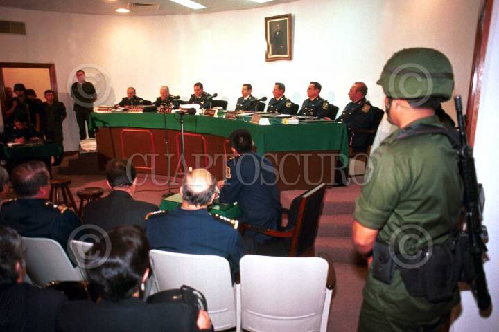 En su resolución de 12 puntos, el Juez Sosa Muñoz también impuso una multa de mil 527 pesos a Quirós y a Acosta, a quienes condenó también a ser destituidos de su empleo como General de División y Brigadier, respectivamente, así como usar uniformes militares y estar inhabilitados por dos años para desempeñar cualquier cargo público. FOTO: Victoria Valtierra/CUARTOSCURO.COM