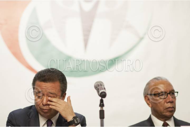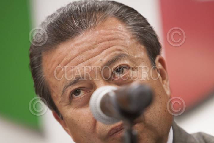 MÉXICO, D.F., 01JULIO2013.- César Camacho Quiróz, presidente nacional del Partido Revolucionario Institucional (PRI), denunció que el Partido Acción Nacional desvió 1,350 millones de pesos del erario de Baja California para favorecer campañas del PAN. FOTO: IVÁN STEPHENS /CUARTOSCURO.COM