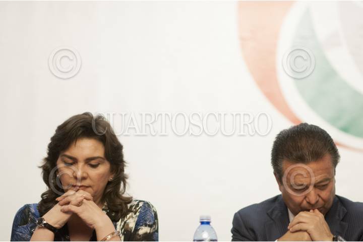MÉXICO D.F., 26FEBRERO2013.- Ivonne Aracelly Ortega Pacheco, secretaria general del Partido Revolucionario Institucional (PRI); y César Camacho Quiroz, presidente nacional del Comité Ejecutivo Nacional (CEN) del PRI, encabezaron los trabajos de instalación del Comité intersecretarial para la atención y promoción de los derechos humanos. FOTO: IVÁN STEPHENS /CUARTOSCURO.COM
