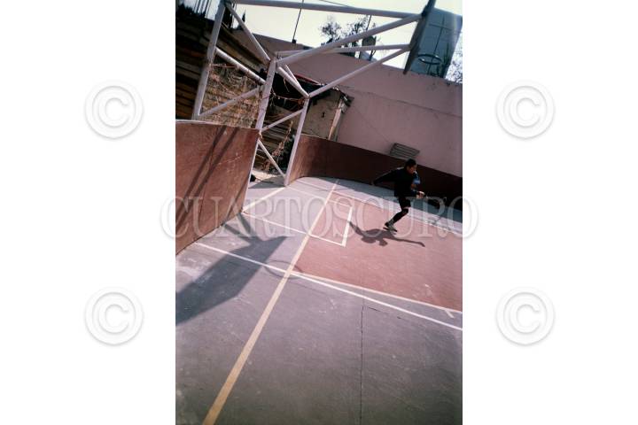 MÉXICO, D.F., 22ENERO2015.- Un grupo de jóvenes juega futbol en chanclas en una cancha de futbol rápido ubicada en el Parque de los Venados. FOTO: GUILLERMO PEREA /CUARTOSCURO.COM