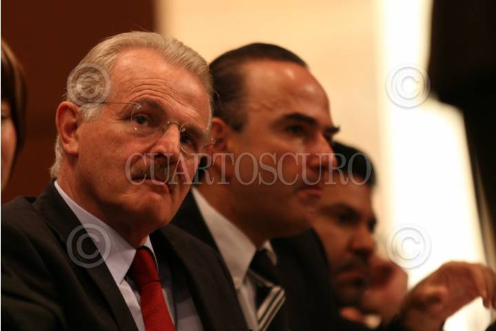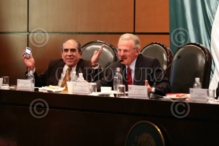 MÉXICO D.F., 14AGOSTO2008.- Se realizó en la Cámara de Diputados el foro con el tema “Análisis sobre la Reforma Energética, Regimen Fiscal de PEMEX”. En la imagen los senadores Pablo Gómez y Francisco Labastida Ochoa. FOTO: GUILLERMO PEREA/CUARTOSCURO.COM
