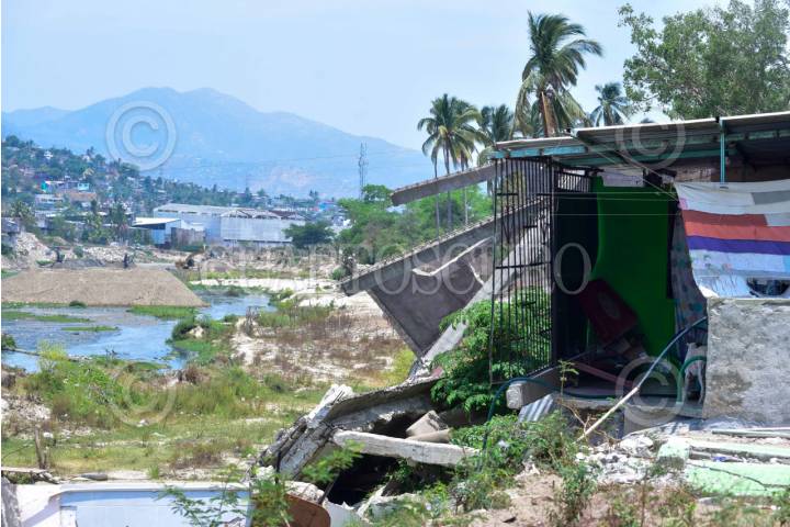 ACAPULCO, GUERRERO, 11MAYO2025.- La Rivera del río de La Sabana en la periferia de Acapulco, Muestra la severa contaminación y los estragos que causó el huracán John oseael año pasado, en donde decenas de casas colapsaron al desbordarse el río, actualmente los pobladores viven en la incertidumbre ante la próxima llegada de la temporada de lluvias y huracanes, y en donde aún no les informan sí serán reubicados, mientras tanto la presidenta Claudia Sheinbaum informó que se iniciaría el desasove del río, el cual entra del proyecto del programa 'Acapulco se construye contigo". FOTO: CARLOS ALBERTO CARBAJAL/CUARTOSCURO.COM