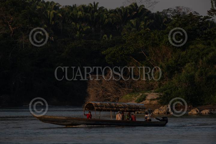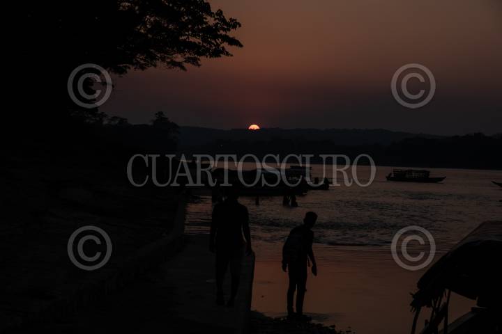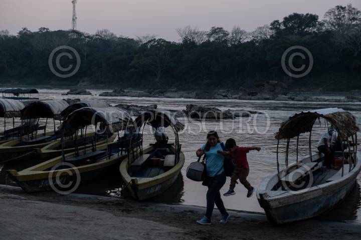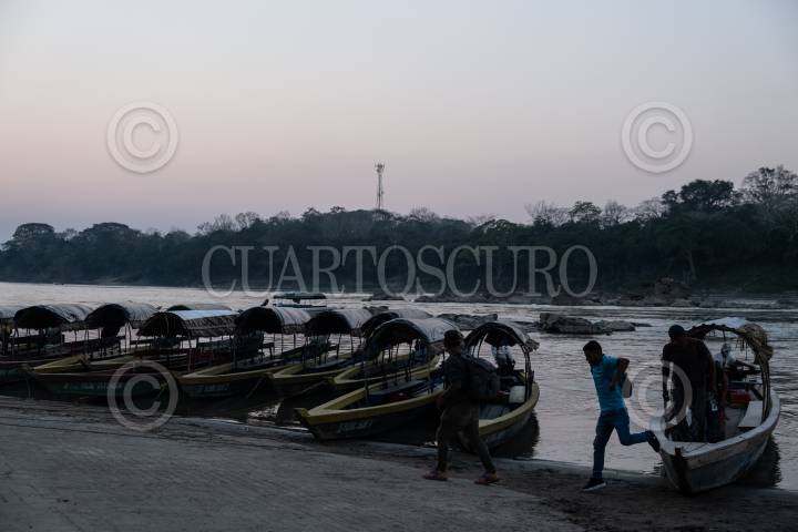 Decenas de migrantes cruzan la frontera con Guatemala por el Río Usumacinta por medio de lanchas para continuar su camino a pie rumbo al norte del territorio mexicano.