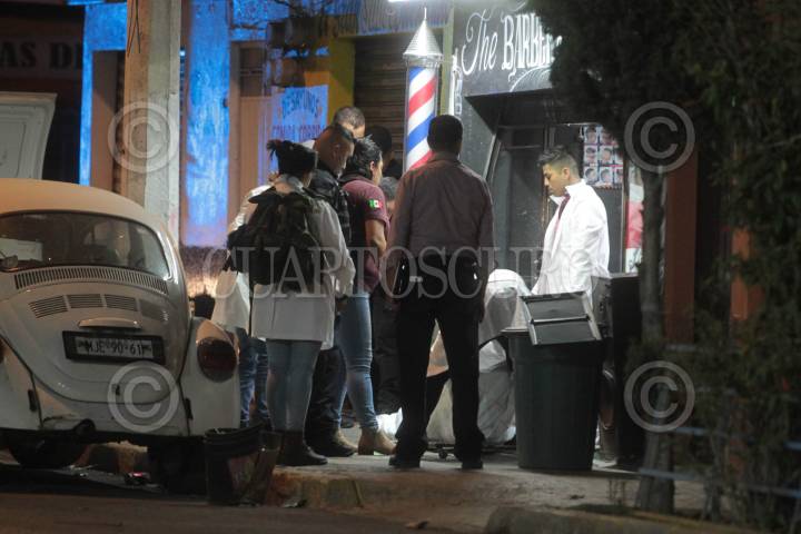 NEZAHUALCÓYOTL, ESTADO DE MÉXICO., 14ABRIL2019.- Cuatro jóvenes fueron rafagueados al interior de una barbería, mismos que trabajaban como encargados de un bar. En la barbería quedaron dos cuerpos sin vida y dos más fueron trasladados con vida a un hospital cercano. FOTO: LUIS CARBAYO /CUARTOSCURO.COM