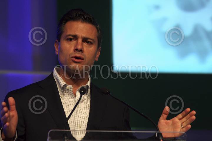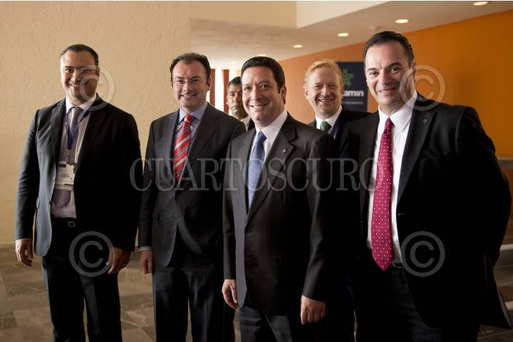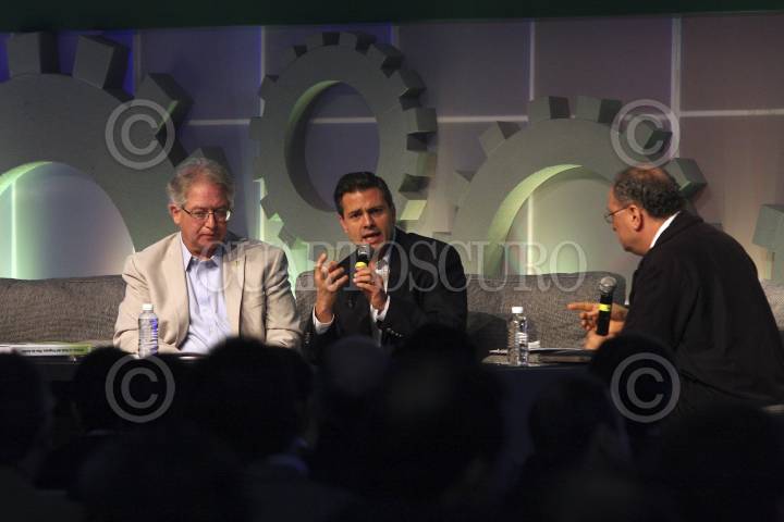 GUADALAJARA, JALISCO, 21ENERO2012.- El precandidato a la Presidencia de La República por el PRI, Enrique Peña Nieto asistió esta mañana la Reunión Anual de Industriales 2012 en esta ciudad y en donde planteo parte de sus propuestas y proyectos de gobierno en caso de ser electo, el presidencial todo el tiempo estuvo acompañado de Jorge Aristóteles Sandoval, aspirante a la Gobernatura de Jalisco, así como de Salomon Presburger Slovik (CONCAMIN) y el coordinador del Consejo de Cámaras Industriales en esta entidad, Manuel Herrera Vega. FOTO: FERNANDO CARRANZA GARCIA/CUARTOSCURO.COM