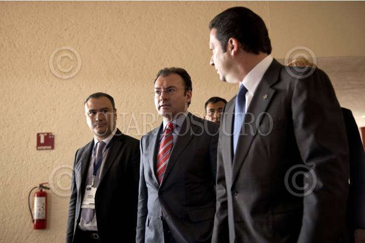 MÉXICO, D.F., 19SEPTIEMBRE2013.- Luis Videgaray, secretario de Hacienda y Crédito Público (SHCP), participó en la Reunión Anual de Industriales (RAI), organizado por la Confederación de Cámaras Industriales (Concamin), en la imagen lo acompaña Francisco Javier Funtanet, presidente de la Concamin. FOTO: MISAEL VALTIERRA / CUARTOSCURO.CO