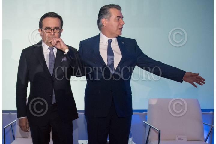 CIUDAD DE MÉXICO, 13SEPTIEMBRE2018.- Idelfonso Guajardo, secretario de Economía, y Francisco Cervantes Díaz, presidente de la CONCAMIN, durante la inauguración de la Reunión Anual de Industriales (RAI) 2018, en el marco de la celebración de los 100 años de la CONCAMIN. FOTO: MARIO JASSO /CUARTOSCURO.COM