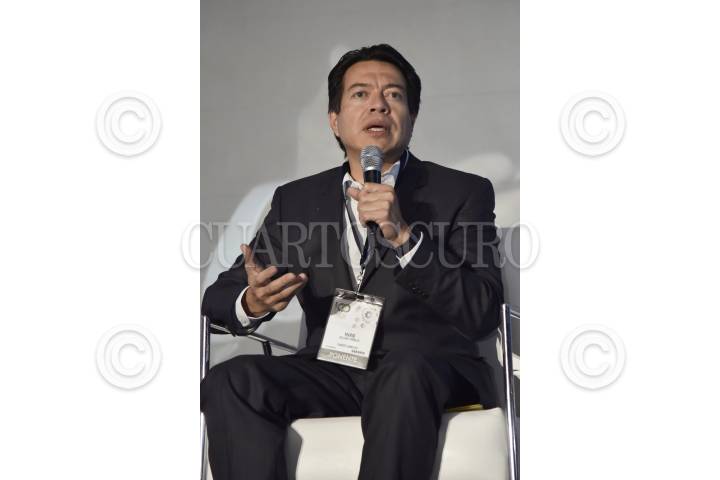 CIUDAD DE MÉXICO, 14SEPTIEMBRE2018.- Mario Delgado, coordinador de Morena en la Cámara de Diputadoa durante su participación en el segundo día de las actividades de la Reunión Anual de Industriales (RAI) 2018, llevaba a cabo en el marco de la celebración de los 100 años de la CONCAMIN. FOTO: MARIO JASSO /CUARTOSCURO.COM