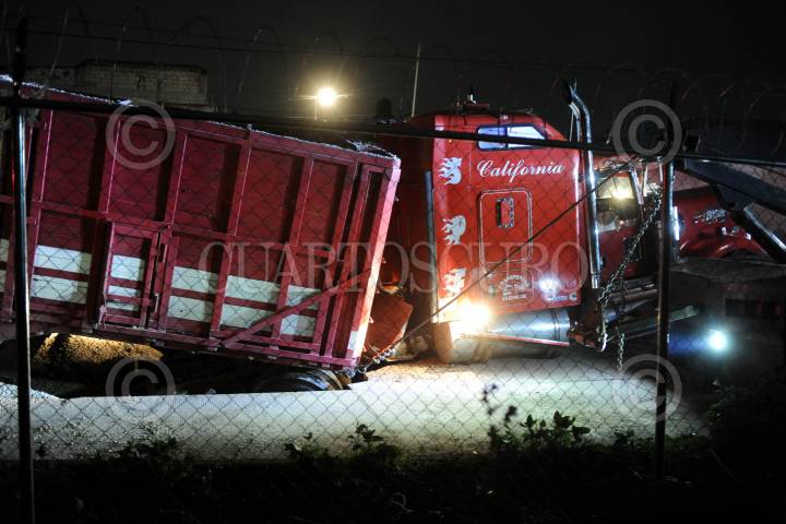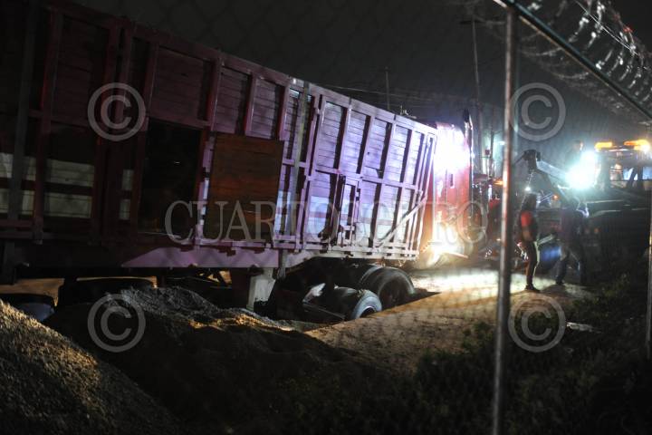 ECATEPEC, ESTADO DE MÉXICO., 12JULIO2019.- Un tráiler cayo a socavón que se origino al paso del pesado camión en avenida Ávila Camacho entre las calles Guadalajara y Toluca de la colonia El Chamizal en municipio de Ecatepec. FOTO: LUIS CARABYO /CUARTOSCURO.COM