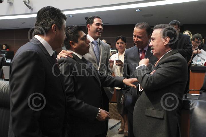MÉXICO, D.F., 16OCTUBRE2014.- Los senadores Raúl Aarón Pozos Lanz, Jorge Luis Preciado, Pablo Escudero, Daniel Amador Gaxiola y Emilio Gamboa Patrón, conversan en la sesión de la Cámara de Diputados. FOTO: CUARTOSCURO.COM
