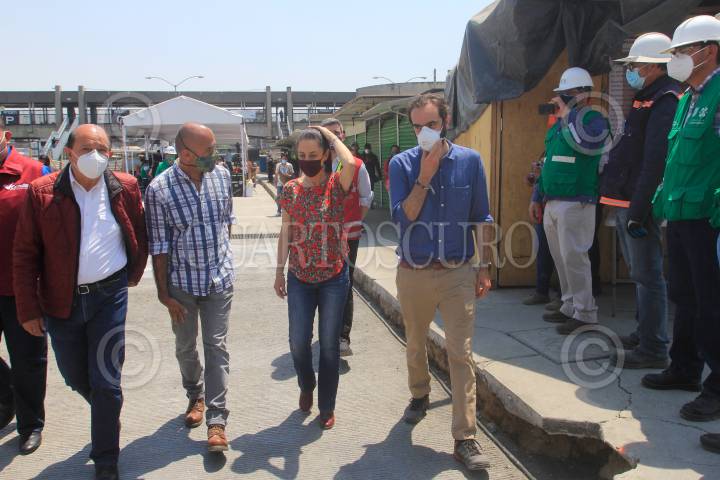 Claudia Sheinbaum, jefa de Gobierno, encabezó la supervisión de obras del Metrobús de la Línea 4 en la letra N del paradero del metro Pantitlán