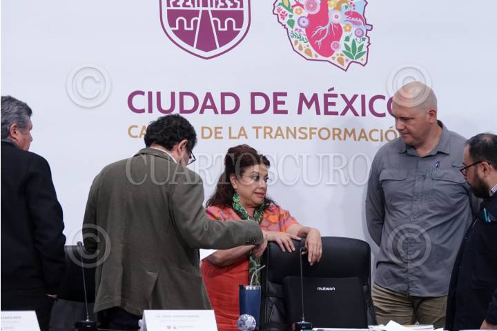 CIUDAD DE MÉXICO. 16JULIO2025.- Clara Brugada Molina, jefa de Gobierno, encabezó la conferencia “Por una ciudad habitable y asequible con identidad y arraigo local”, en el Palacio del Ayuntamiento Capitalino. La acompañan César Cravioto, secretario de gobierno, Martha Ávila, diputada del congreso local, Rafael Guerra Álvarez, presidente del Tribunal Superior de Justicia, Inti Muñoz, secretario de Vivienda, Nashieli Ramírez Hernández, titular de la Comisión de Derechos Humanos; César Cravioto Romero, secretario de Gobierno; Raúl Basulto Luviano, secretario de Obras y Servicios; Pablo Yanes Rizo, secretario de Educación; Alejandra Frausto Guerrero, secretaria de Turismo; Julia Álvarez Icaza, secretaria de Medio Ambiente; Ana Francis López Bayghen, secretaria de Cultura; Myriam Urzúa Venegas, secretaria de Gestión Integral de Riesgos y Protección Civil, así como Eréndira Cruzvillegas Fuentes, consejera Jurídica. FOTO: VICTORIA VALTIERRA/CUARTOSCURO.COM