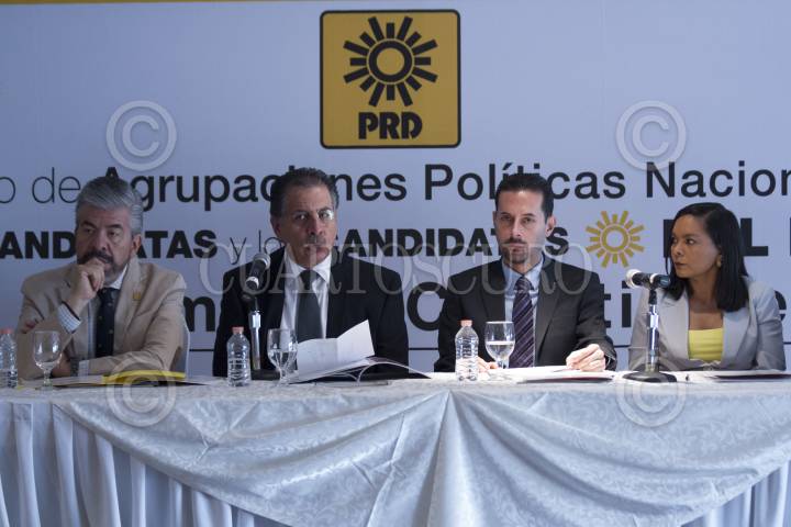 CIUDAD DE MÉXICO, 26MAYO2016.- Raúl Flores, presidente del PRDF DF; Jesús Ortega, candidato del PRD al Constituyente; Mao Sanz Culebro, líder de la Unidad Nacional Progresista, y Beatriz Mojica, secretaria general del PRD, durante la firma de compromisos de Agrupaciones Políticas Nacionales y candidatos y candidatas perredistas al Constituyente. FOTO: MOISÉS PABLO /CUARTOSCURO.COM