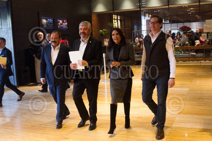 CIUDAD DE MÉXICO, 08ENERO2018.- Raúl Flores, presidente del Partido Revolucionario Institucional (PRD) en la Ciudad de México; Mauricio Tabe, presidente del Partido Acción Nacional (PAN en la capital, y José Francisco Olvera Ruiz, presidente del Partido Revolucionario Institucional (PRI) en la ciudad, durante la presentación ante medios del pacto de civilidad entre los representantes de siete de los diez partidos políticos registrados en la capital. El motivo del pacto es garantizar una contienda libre de violencia en los actos de precamapaña. FOTO: GALO CAÑAS /CUARTOSCURO.COM