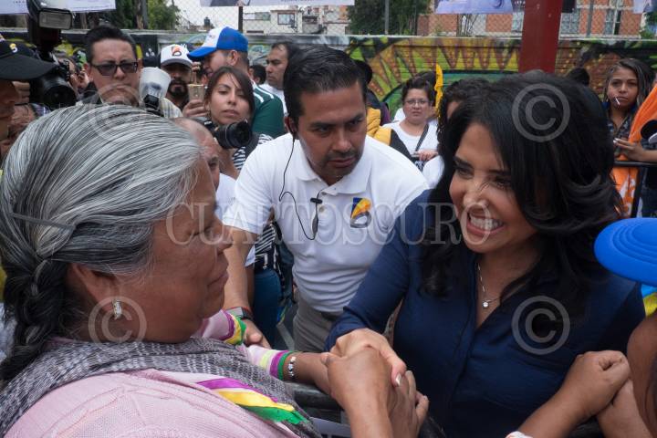 CIUDAD DE MÉXICO, 26JUNIO2018.- Alejandra Barrales Magdaleno, candidata a la jefatura de Gobierno de la Ciudad, por la coalición “Por una CDMX al frente”, de los partidos PAN, PRD y MC, presidió asamblea vecinal en el centro deportivo Kid Azteca en Tepito. Al evento asistieron también Raúl Flores, presidente del PRD en la Ciudad de México y Humberto Lozano candidato a la alcaldía de la delegación Cuauhtémoc. FOTO: ANDREA MURCIA /CUARTOSCURO.COM