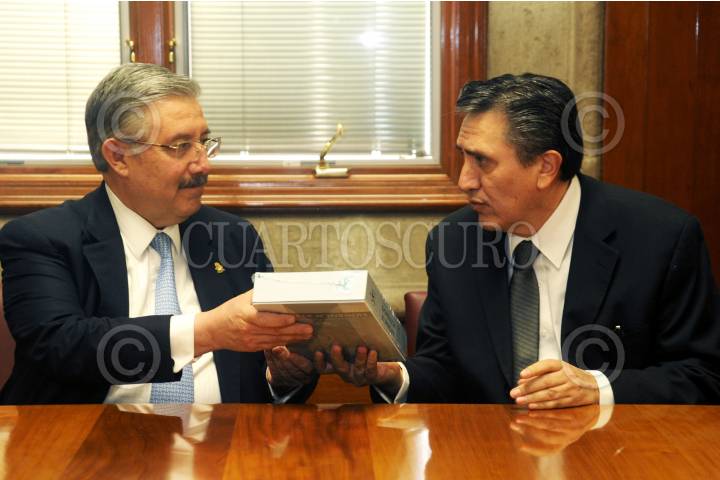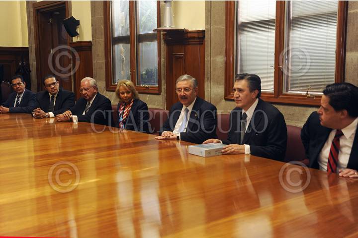 MÉXICO, D.F., 14ABRIL2015.- El Ombudsman nacional, Luis Raúl González Pérez, entregó hoy el Informe de Actividades 2014 de la Comisión Nacional de los Derechos Humanos al Presidente de la Suprema Corte de Justicia de la Nación, Ministro Luis María Aguilar Morales, de acuerdo con lo dispuesto en el Apartado B del Artículo 102 Constitucional. En su visita a la Corte, tuvo la oportunidad de saludar a todas las Ministras y Ministros, donde se destacó la afinidad de objetivos comunes entre ambas instancias. FOTO: CNDH /CUARTOSCURO.COM