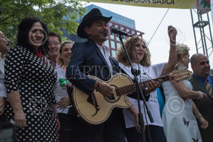 CIUDAD DE MÉXICO, 20FEBRERO2018.- Raúl Hernández "Tigre Solitario", ex integrante de Los Tigres del Norte, participó en la cadena humana por el Yoga frente a las instalaciones del Senado de la República. FOTO: ADOLFO VLADIMIR /CUARTOSCURO.COM
