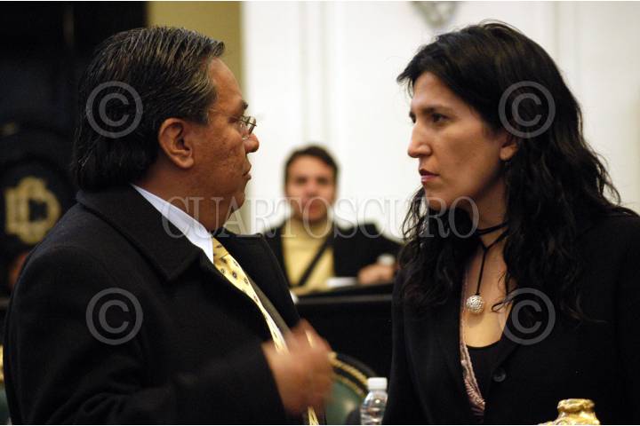 MÉXICO D.F. 26DICIEMBRE2006.- Los diputados locales del Isaias Villa del PRD y Kenia López Rabadán del PAN, durante la sesión en la Asamblea Legislativa. FOTO: GUILLERMO PEREA/CUARTOSCURO.COM