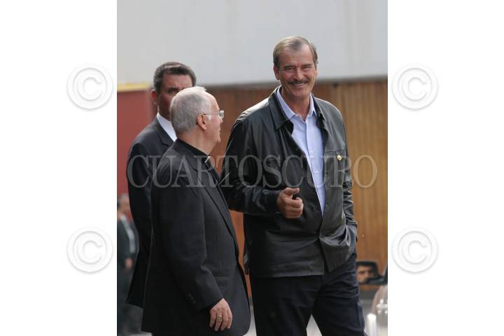 CUAUTITLAN IZCALLI, ESTADO DE MEXCIO2006.-El presidente Vicente Fox despide de Martín Rabago, arzobispo de León al termino de ua reunión privada en la sede de la Conferencia del Espiscopado Méxicano. FOTO: NELLY SALAS/CUARTOSCURO.COM