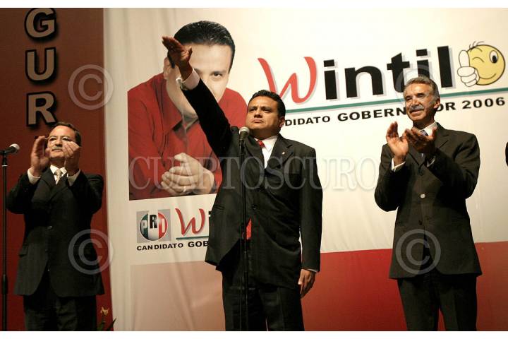 GUANAJUATO, GUANAJUATO, 11MARZO2006. Roberto Madrazo, candidato de la Alianza por Mexico, durante su gira proselitista por el estado de Guanajuato y asisitio a la toma de protesta de Wintilo Vega , candidato del PRI a la gubernatura del estado FOTO. Juan Flores/CUARTOSCURO.COM