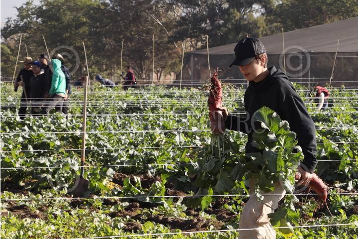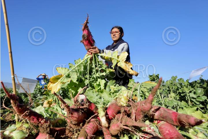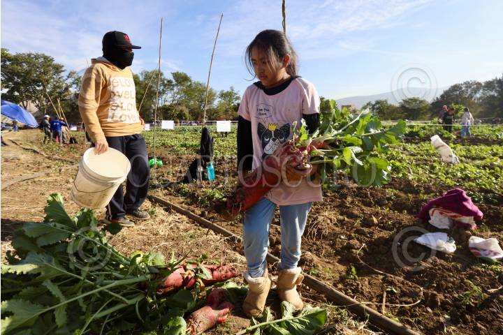 SANTA CRUZ XOXOCOTLÁN, OAXACA, 19DICIEMBRE2023.- Está mañana se llevó a cabo la cosecha para la edición 126 de la Noche de Rábanos. Los tubérculos de dos variedades son cosechados por artesanos que participan en dos categorías: libre y tradicional. Los artesanos labran en el tubérculo figuras nacidas de la destreza e imaginación que se exponen el 23 de diciembre en el zócalo de la ciudad de Oaxaca; está tradición nació hace 126 años cuando se realizaba una plaza de navidad en el zócalo y los hortelanos labraban figuras con rábanos y hortalizas para llamar la atención de los clientes. FOTO: CAROLINA JIMÉNEZ/CUARTOSCURO.COM