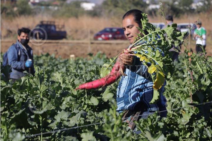 Cosecha de los rábanos que serán utilizados en la tradicional Noche de Rábanos en Santa Cruz Xoxocotlán, Oaxaca.