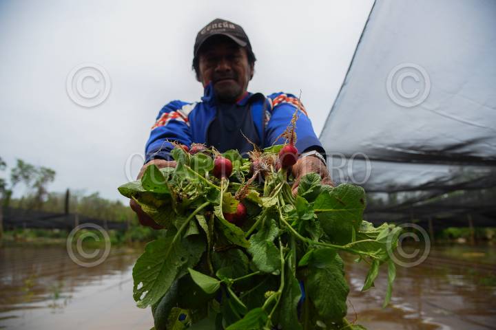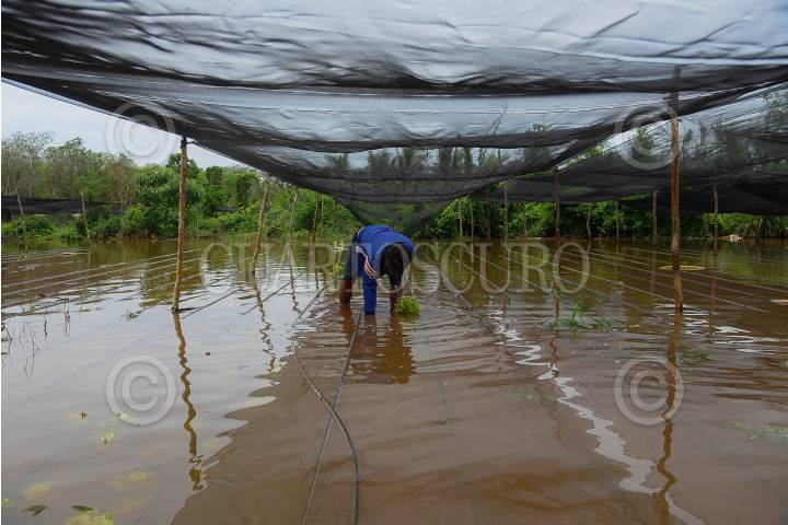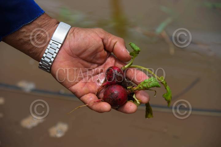 CAMPECHE, CAMPECHE, 19JULIO2024.- Las intensas lluvias recientes en la ciudad han devastado las parcelas de los agricultores del poblado de Chemblás quienes se dedican a la siembra de rábanos, cilantro, lechuga, epazote y yerbabuena. Don Germán Chin Mis, uno de los afectados, perdió cerca de una hectárea de cultivos. Desde temprano, él y otros agricultores trabajaron arduamente para rescatar lo poco que quedó del rábano, ya que la mayoría de sus productos se perdieron bajo el agua. En total, más de 40 productores han sido afectados, impactando a unas 100 familias que dependen de estos cultivos para su sustento. FOTO: MICHAEL BALAM/CUARTOSCURO.COM