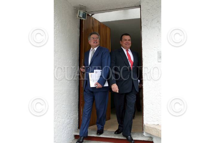 MÉXICO, D.F. 12SEPTIEMBRE2007.- Carlos Aguirre y Francisco Aguirre, directivos de Grupo Radiocentro a su salida de la reunón con medios de comunicación que se llevó a cabo en la sede de la CIRT. FOTO: PAOLA HIDALGO/CUARTOSCURO.COM