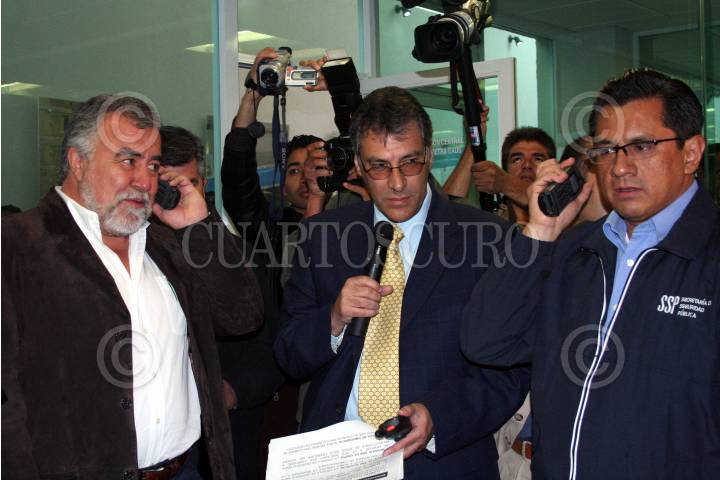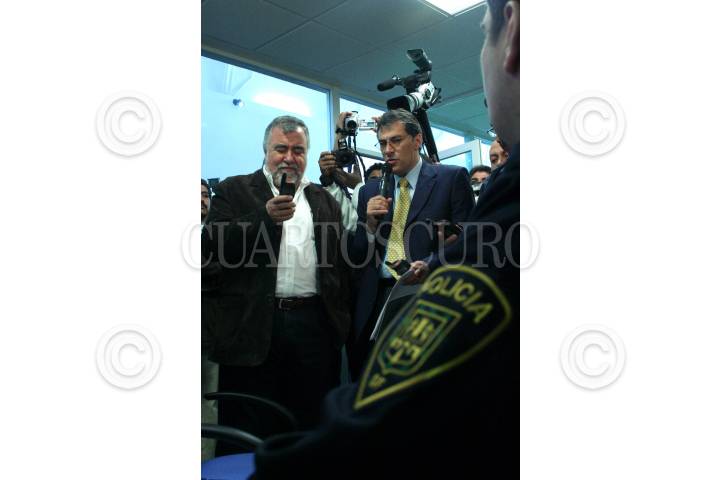 MÉXICO, D.F. 04NOVIEMBRE2006.- El jefe de Gobierno del Distrito Federal, Alejandro Encinas, y el secretario de Seguridad Pública local, Joel Ortega, prueban el nuevo sistema de radiocomunicación Tetra FOTO: ISAAC ESQUIVEL/CUARTOSCURO.COM