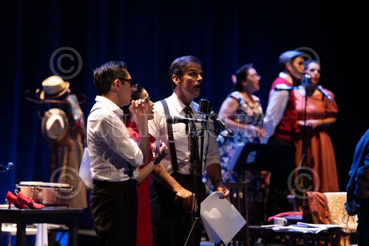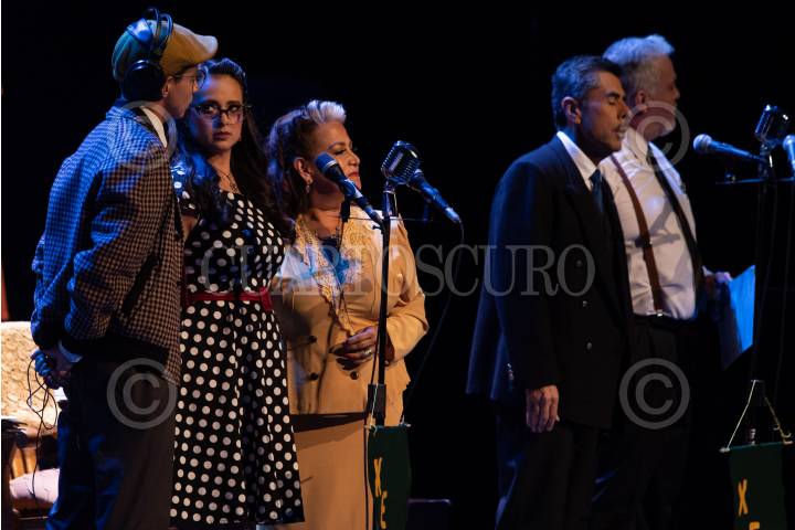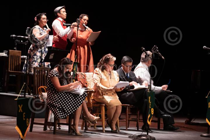 Presentación de la puesta en escena "Crimen, Pasión y Boleros: La Radionovela de México" en el Teatro Esperanza Iris.