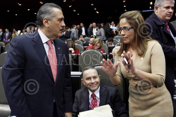 MÉXICO, D.F., 28NOVIEMBRE2012.- Los diputados priistas José Sergio Manzur Quiróga, y Rafael Alejandro Moreno Cárdenas muestran la playera del equipo de fútbol Toluca en la sesión de diputados. FOTO: CUARTOSCURO.COM