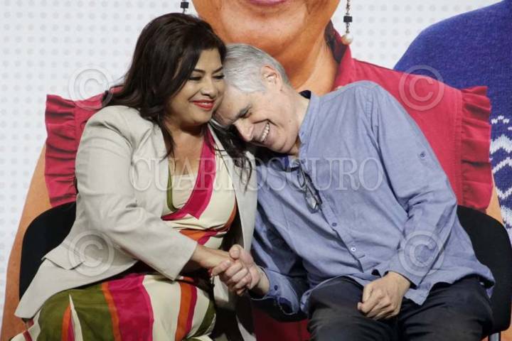 CIUDAD DE MÉXICO, 01ABRIL2024.- Clara Brugada, candidata a la Jefatura de Gobierno, y el escritor Rafael Barajas durante la presentación de Eje Temático Fortalecimiento de la Democracia y Gobierno Honesto en el Centro Cultural Estación Indianilla. FOTO: GRACIELA LÓPEZ /CUARTOSCURO.COM