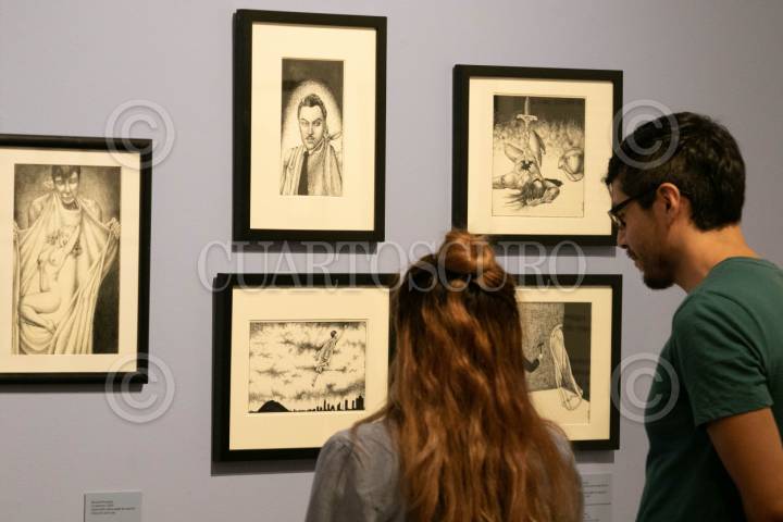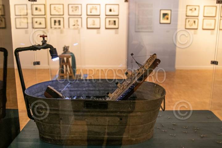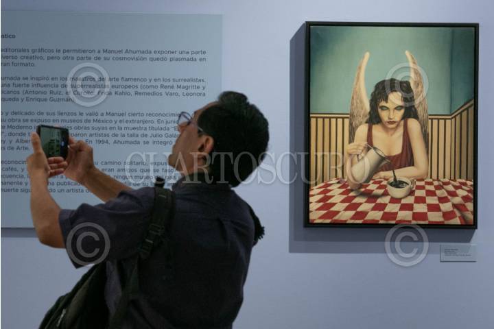 CIUDAD DE MÉXICO, 16MAYO2024.- Con la presencia de Jaqueline Valadez Pastor, viuda del artista plástico Manuel Ahumada (1956-2014), y Rafael Barajas "El Fisgón", se ofreció un recorrido por la exposición "Manuel Ahumada: Del Espacio Exterior al Circuito Interior", en el Museo del Estanquillo. La exposición consta de 164 piezas que celebran la dan fe de la extensa trayectoria de uno de los artistas más atípicos de México, que abarcó diferentes géneros como historieta, caricatura, pintura al óleo y arte objeto. FOTO: MOISÉS PABLO/CUARTOSCURO.COM