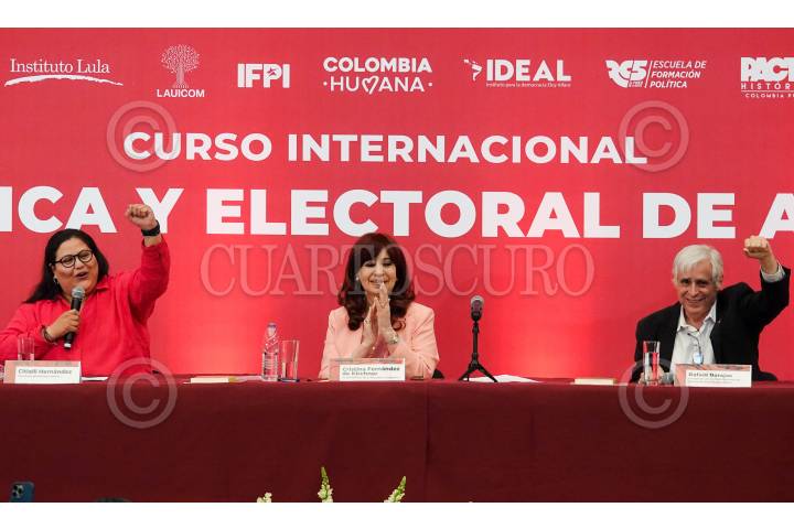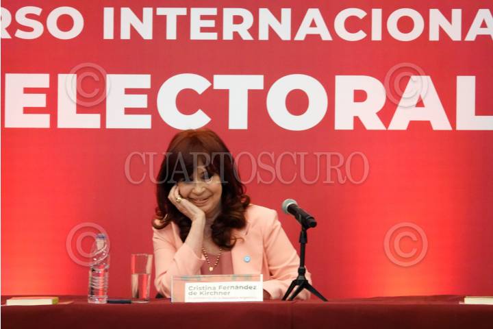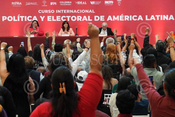 CIUDAD DE MÉXICO, 03AGOSTO2024.- Cristina Fernández de Kirchner, ex presidenta de Argentina, participó en la clausura del Curso Internacional "Realidad Política y Electoral de América Latina" organizado por el Instituto Nacional de Formación Política (INFP) del partido Movimiento de Regeneración Nacional (MORENA). La ex mandataria estuvo acompañada de Citlalli Hernández, secretaria general de Morena, y Rafael Barajas "El Fisgón", titular del INFP. FOTO: GALO CAÑAS/CUARTOSCURO.COM